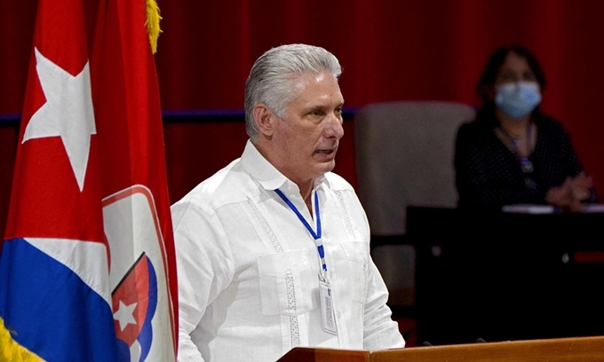 Chủ tịch Cuba Miguel Diaz-Canel phát biểu tại đại hội đảng Cộng sản Cuba ở thủ đô La Habana ngày 18/4. Ảnh: ACN.