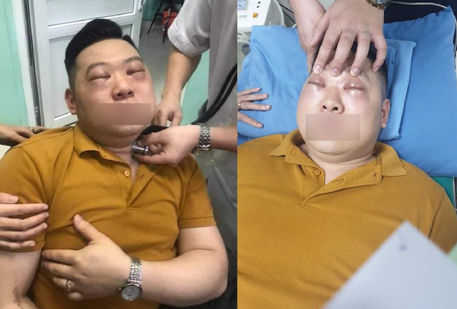 Bác sĩ Sùng Đức Long, Giám đốc Trung tâm cấp cứu 115, Bệnh viện đa khoa Hùng Vương, Phú Thọ thông tin, khi nhập viện, người bệnh đã ở trong tình trạng sốc phản vệ nặng với với biểu hiện phù nề toàn bộ mặt và hai mắt, mắt không thể mở, tức ngực, khó thở.