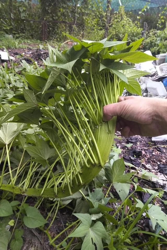 Mới đây một loại cây rau lang to gấp chục lần bình thường đã được phát hiện. Chủ của cây rau lang đột biến còn đang nhờ cộng đồng mạng thẩm định giá quả lang đột biến xem được bao nhiêu.