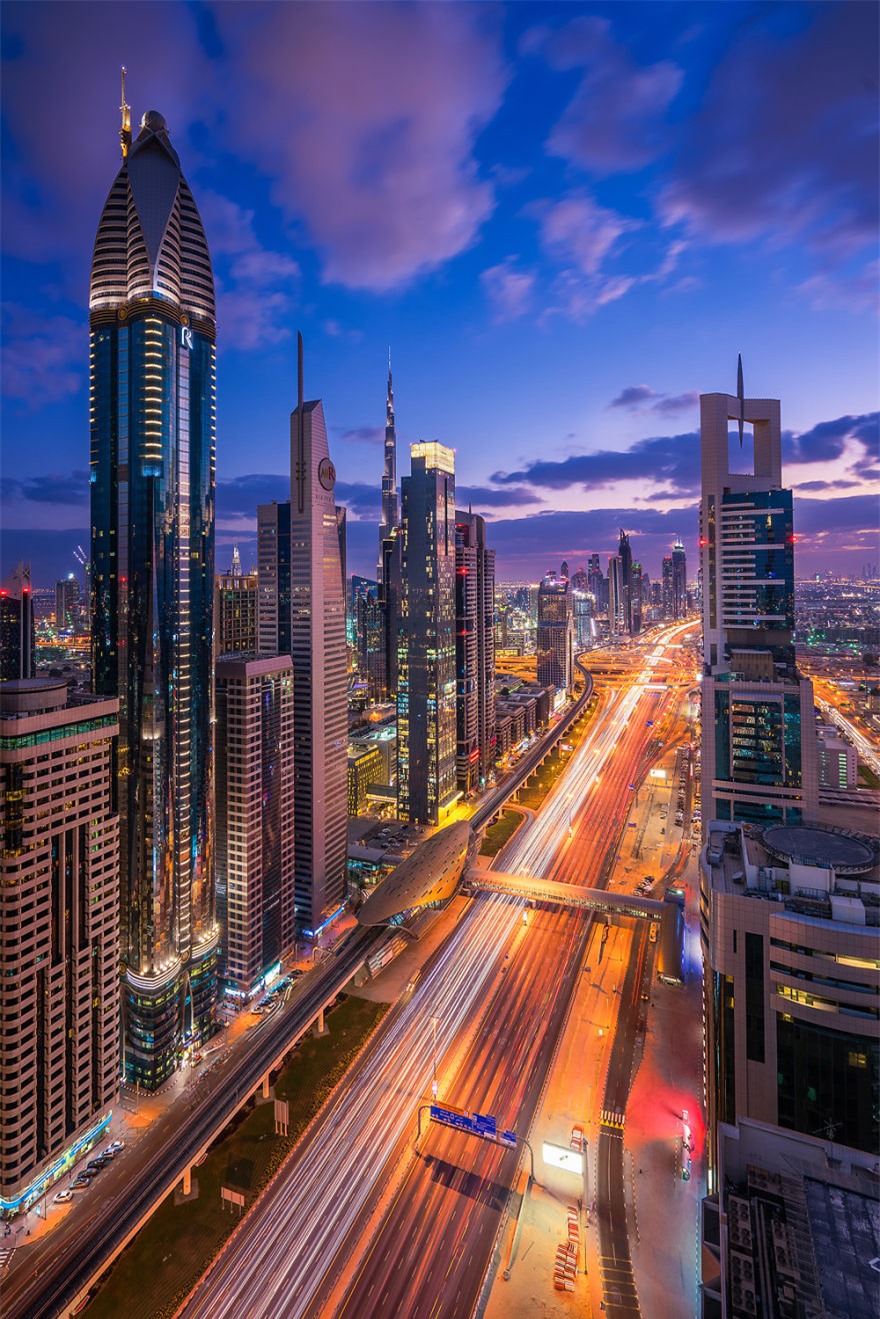 Thành phố Dubai đẹp như phim khoa học viễn tưởng khi đêm xuống. cả thành phố Dubai lại bừng sáng bởi hàng triệu ánh đèn khi màn đêm buông xuống. Chúng mang đến vẻ đẹp đầy choáng ngợp.
