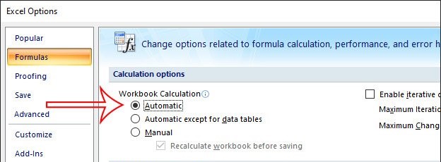 Old  Default Cách sửa lỗi công thức Excel không nhảy