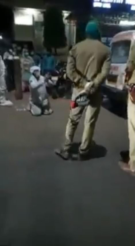 Video lan truyền trên mạng xã hội cho thấy một người đàn ông quỳ gối bên ngoài một bệnh viện tư nhân ở thành phố Agra, bang Uttar Pradesh khóc lóc và van xin cảnh sát.