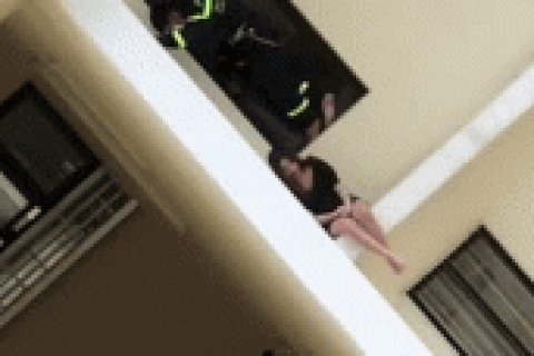 Một chiến sĩ nhẹ nhàng bước ra từ cửa sổ, rồi giữ chặt cô gái đang ngồi ở gờ lan can. Sau đó, các đồng nghiệp còn lại nhanh chóng tiếp cận, đeo dây an toàn cho cô gái, đưa vào bên trong nhà.
