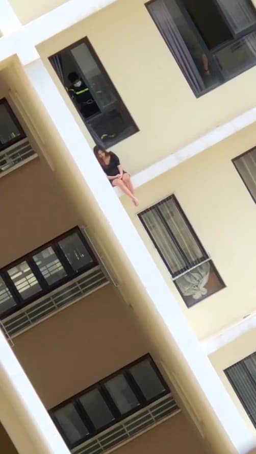Khi chứng kiến cảnh này, nhiều người dân sống quanh khu vực chung cư đã rất hoảng hốt, họ đã gọi lực lượng cứu hộ. Các nhân viên cứu hộ sau đó đã tìm cách tiếp cận được cô gái, nhanh chóng ôm lấy và đưa cô đến nơi an toàn.