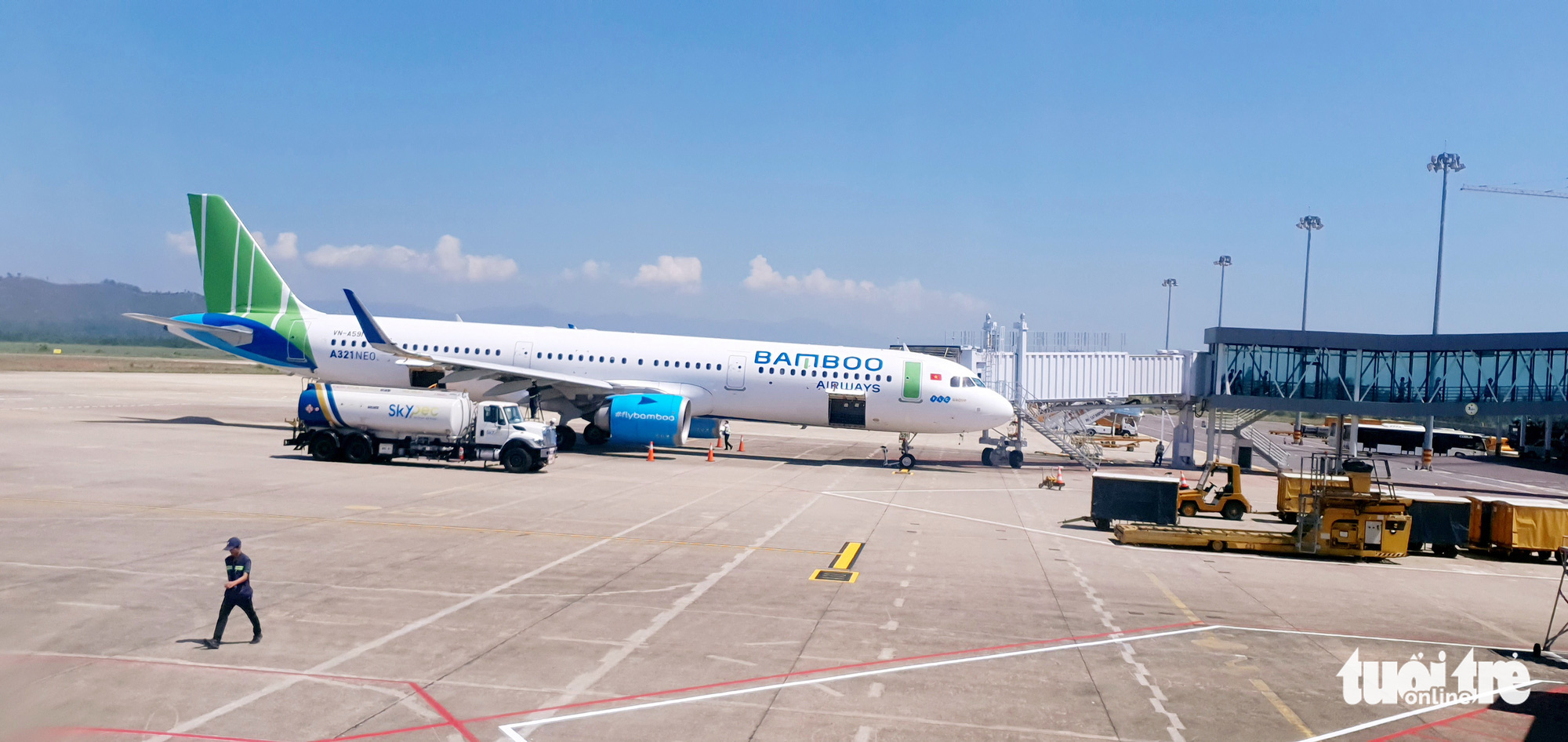Máy bay của Bamboo Airways đang khai thác sân bay Phù Cát - Ảnh: C.TRUNG