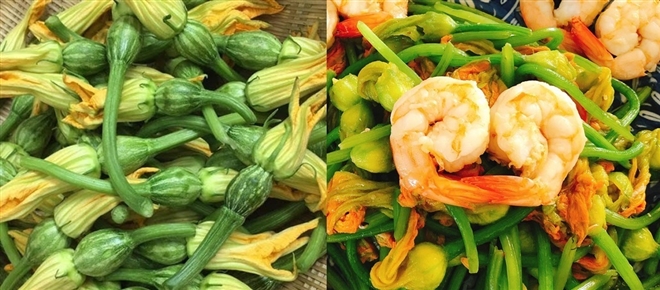 Món ngon mỗi ngày: Hoa bí xào tôm.
