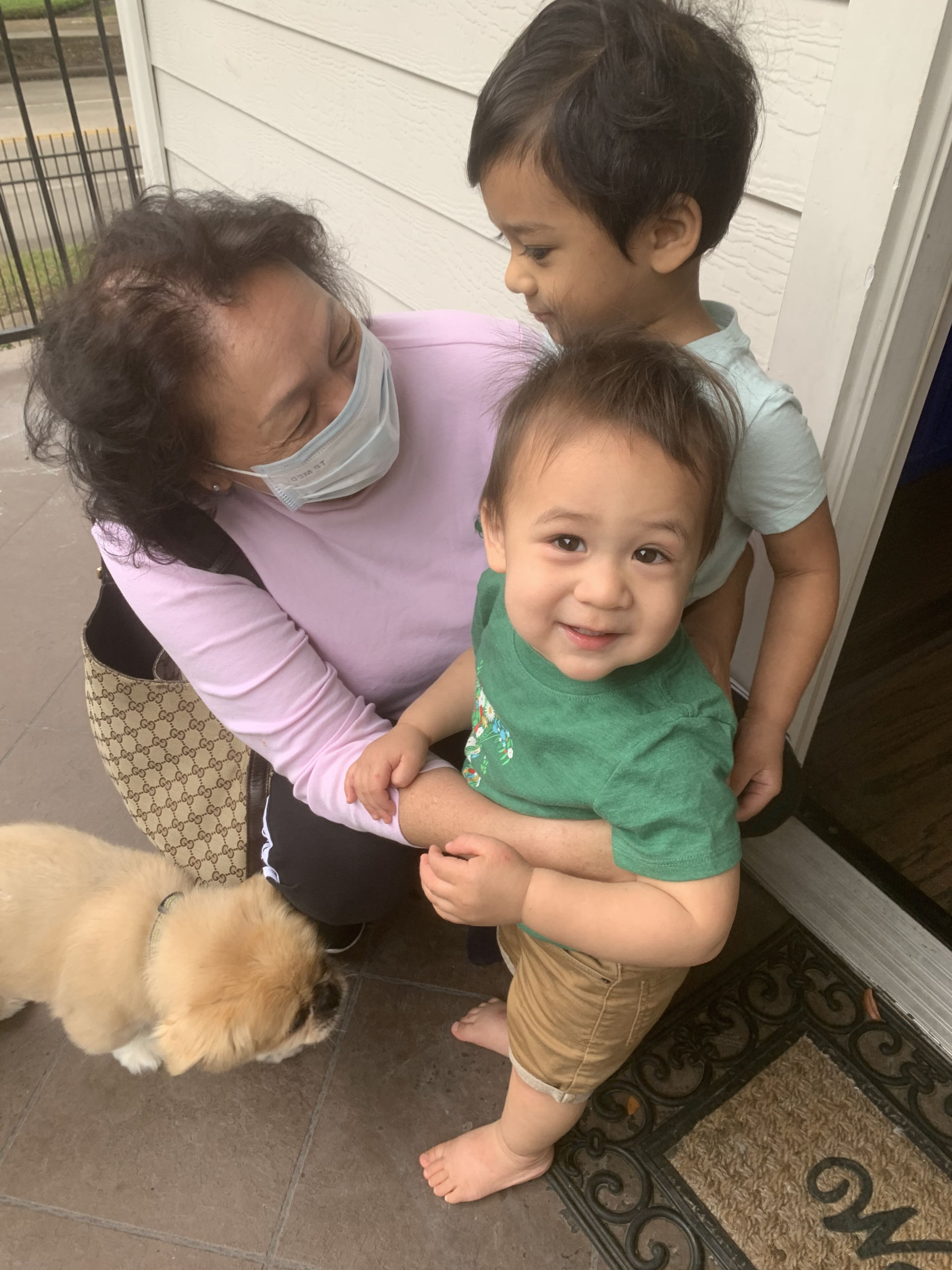 Bé Nathan, anh trai Charlie, và bà ngoại. (Hình: Như Thảo Galvan cung cấp)