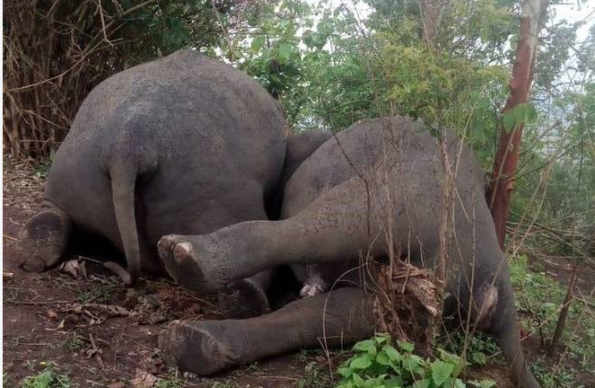 Thi thể của những con voi được người dân địa phương tìm thấy trong khu bảo tồn rừng Kondali ở huyện Nagaon. Trong số 18 con voi chết, có cả voi con.
