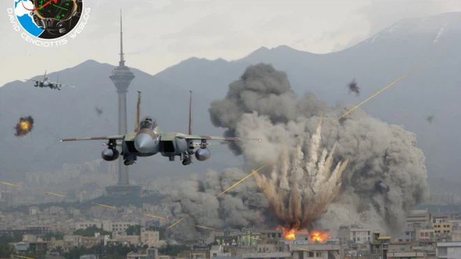 Đợt tấn công đầu tiên bao gồm 96 chiếc tiêm kích F-16 và F-15.