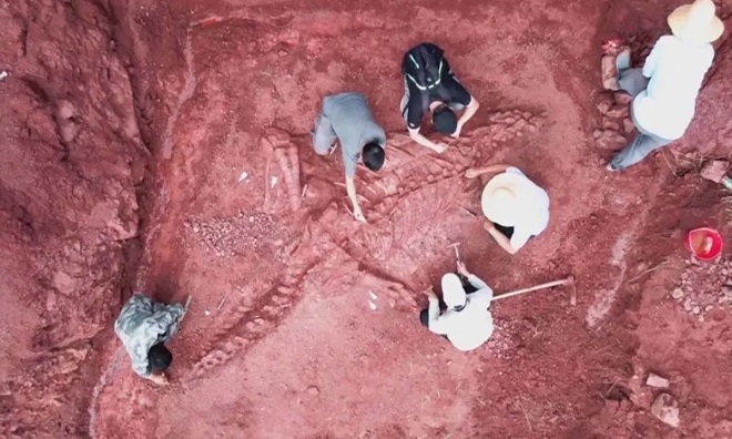 Các nhà cổ sinh vật học Trung Quốc mới tìm thấy hóa thạch khủng long tương đối hoàn chỉnh.