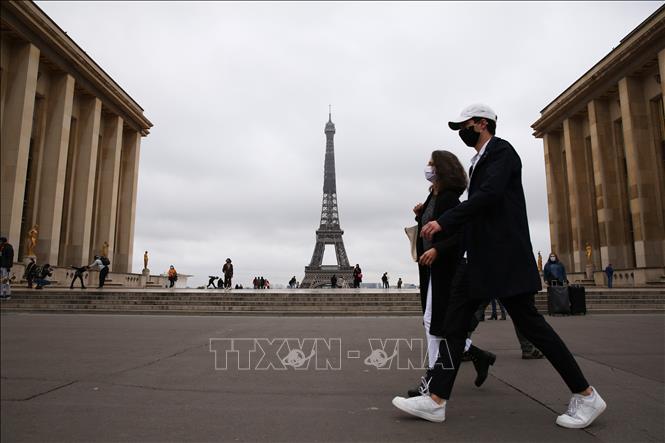 Người dân đeo khẩu trang pḥng lây nhiễm COVID-19 tại Paris, Pháp. Ảnh tư liệu: THX/TTXVN