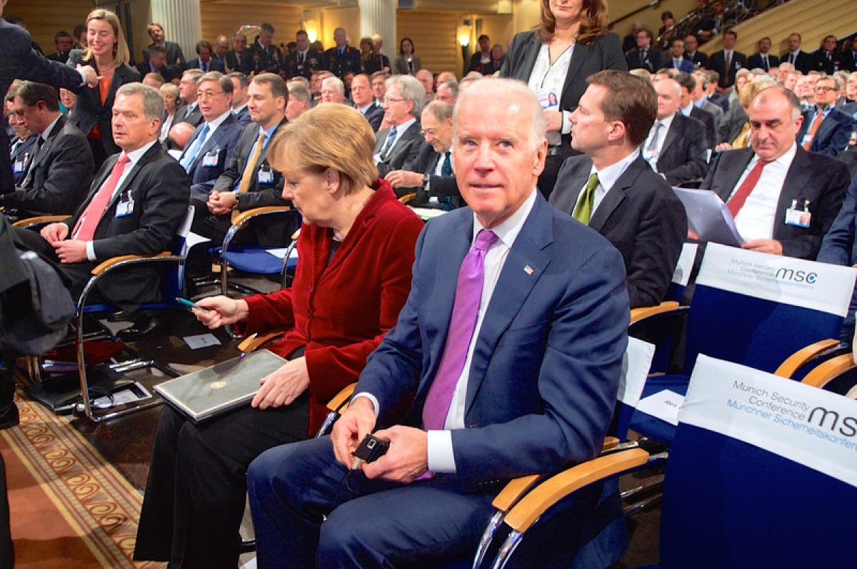 Ông Joe Biden (khi đó còn là ứng viên tổng thống Mỹ của đảng Dân chủ) và Thủ tướng Đức Angela Merkel. Ảnh: EU Observer