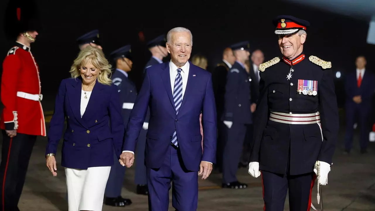 Tồng thống Mỹ Joe Biden (G) và phu nhân Jill Biden (T) đến sân bay Cornwall Airport Newquay, gần Newquay, Cornwall, Anh Quốc, ngày 09/06/2021. REUTERS - PHIL NOBLE