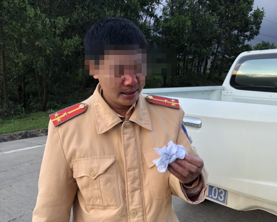 Đang làm việc, đối tượng Hậu bất ngờ tấn công khiến chiến sĩ CSGT bị thương