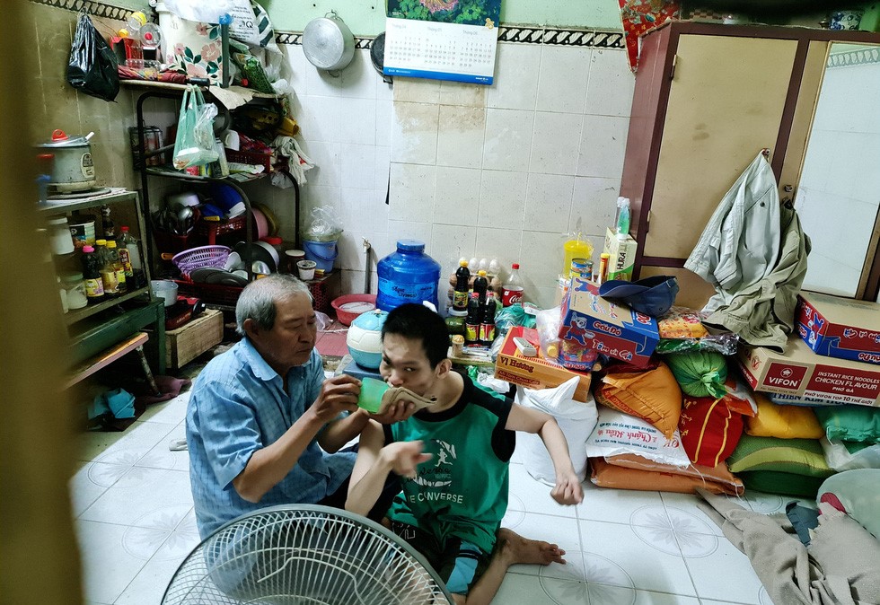 Đó là hoàn cảnh của ông Trần Văn Hưng (58 tuổi) cùng cậu con trai Trần Hiệp Tài (34 tuổi, bại não bẩm sinh).