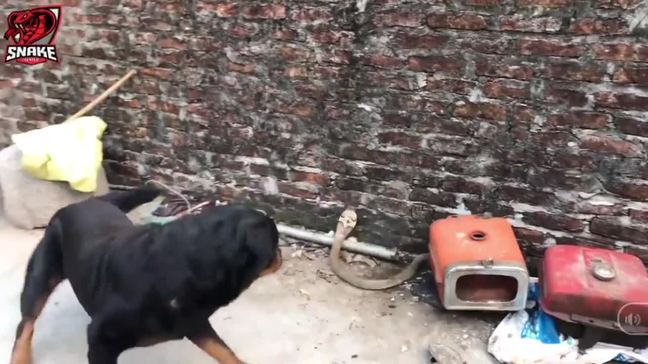 Con chó nhà trong đoạn clip thuộc giống chó săn Rottweiler hung dữ. Con rắn hổ mang Trung Quốc (có tên khoa học là Naja atra Cantor) đã tìm mọi cách lẩn trốn con chó nhà nhưng không thành công.
