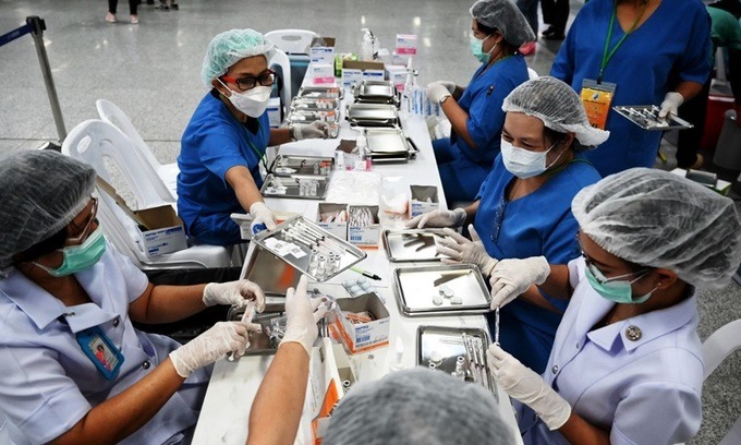 Nhân viên y tế Thái Lan chuẩn bị các liều tiêm vaccine Covid-19 tại Bangkok hôm 22/6. Ảnh: AFP.