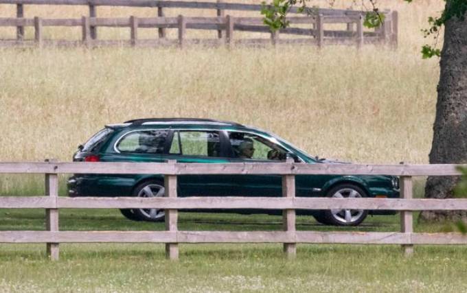 Nữ hoàng tự lái xe về hướng Frogmore Cottage chiều 25/6. Ảnh: Mirror.