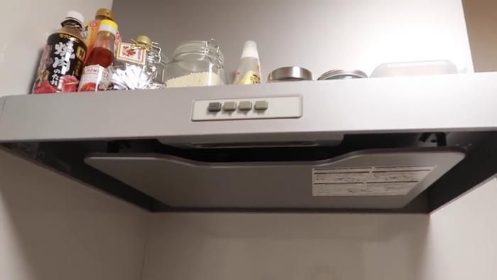 Máy hút mùi còn đóng vai trò như một chiếc kệ để người Nhật Bản có thể đựng gia vị và những thứ nhỏ cần thiết khác trong khi nấu nướng.