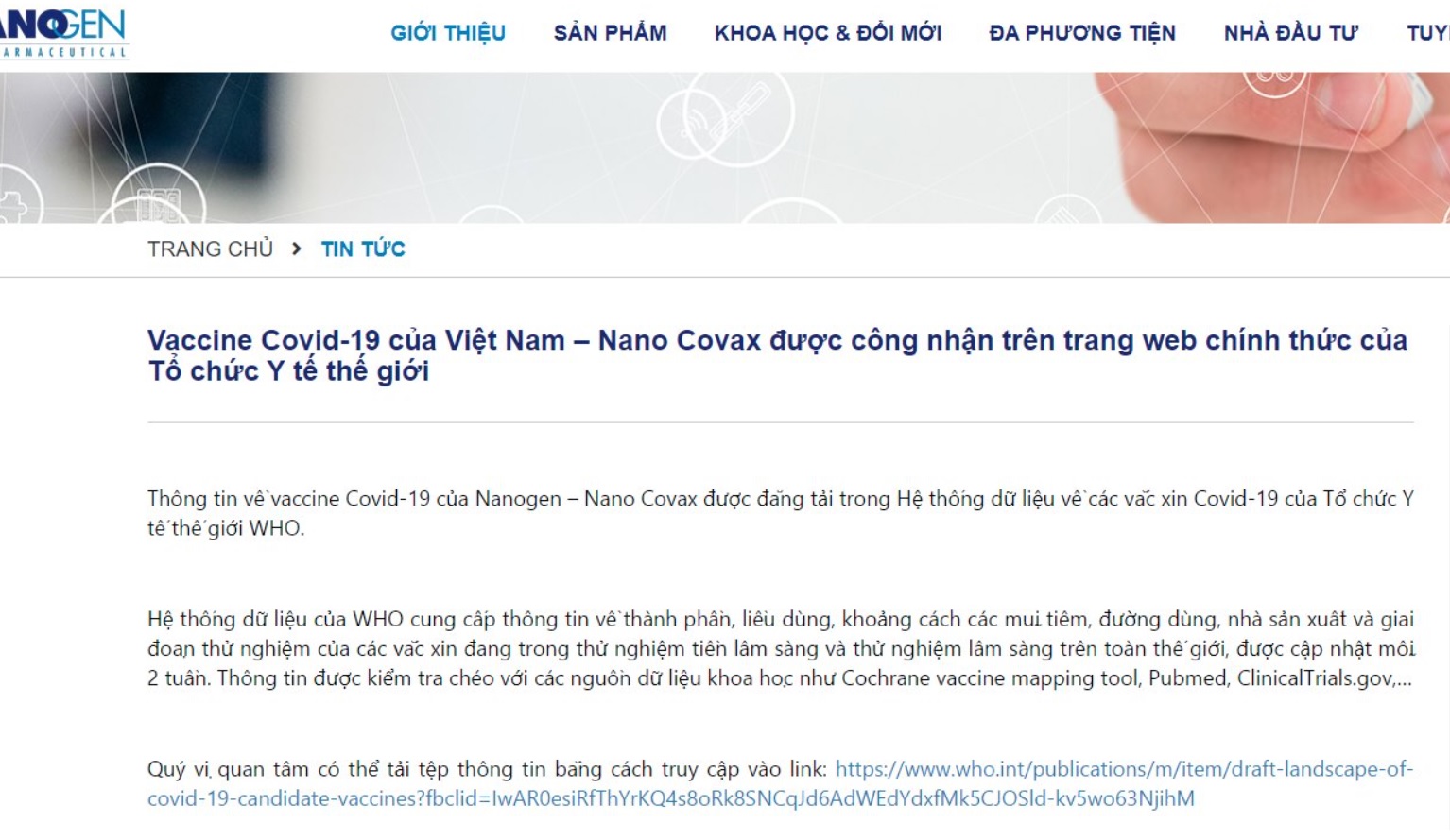 Old  Default Doanh nghiệp sản xuất vaccine VN Nano Covax ‘nổ’ ‘được WHO công nhận’