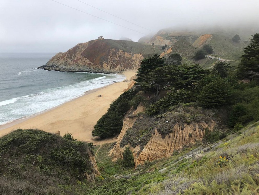 Bãi biển Grey Whale Cove State ở hạt San Mateo, nơi nạn nhân bơi vào và được cứu sống sau khi bị cá mập trắng lớn tấn công. Ảnh: Twitter.