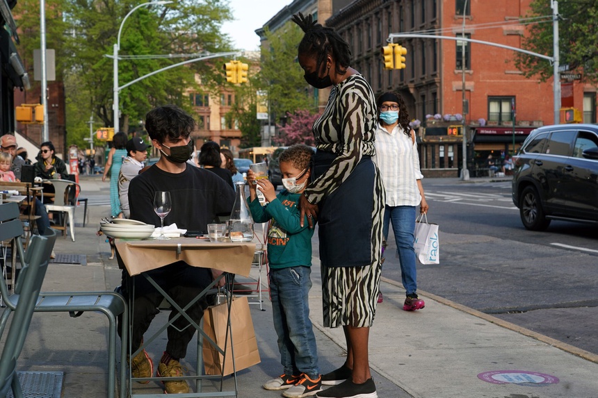 Quán ăn mở lại trên vỉa hè Brooklyn. Ảnh: New York Times.
