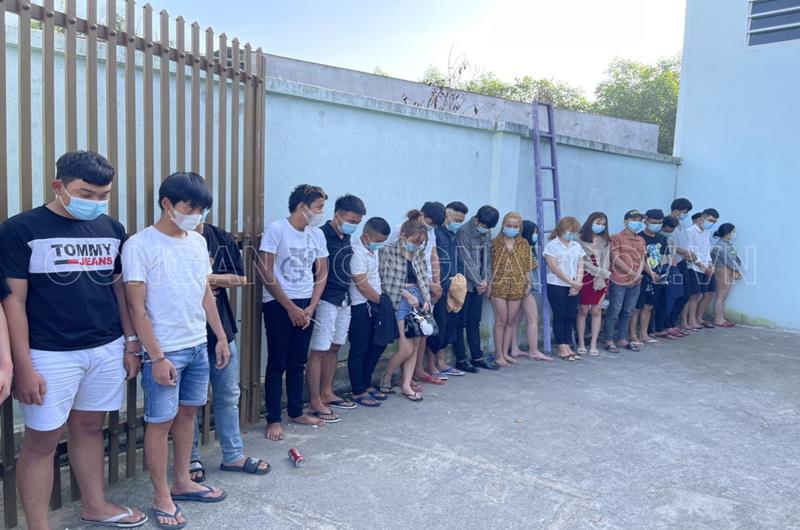 Tại đây công an đã khống chế, bắt giữ 22 đối tượng (16 nam, 06 nữ) đang tụ tập sử dụng trái phép chất ma túy cùng nhiều tang vật và dụng cụ sử dụng ma túy. Qua test nhanh, các đối tượng trên đều dương tính với chất ma túy.