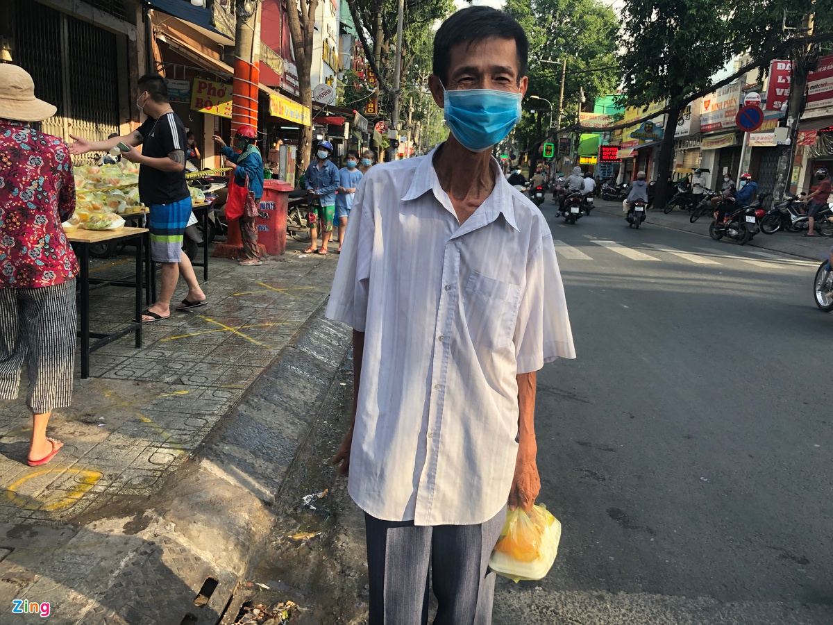 Chung hoàn cảnh như cô Thuỷ, chú Phạm Từ Long (60 tuổi) cũng không thể duy trì công việc bán báo và bán vé số do ảnh hưởng của dịch bệnh. Đây đã ngày thứ 5 chú Long đến tiệm cơm để nhận phần ăn miễn phí. Chú hy vọng sự giúp đỡ này có thể kéo dài để cuộc sống được giảm đi gánh nặng.