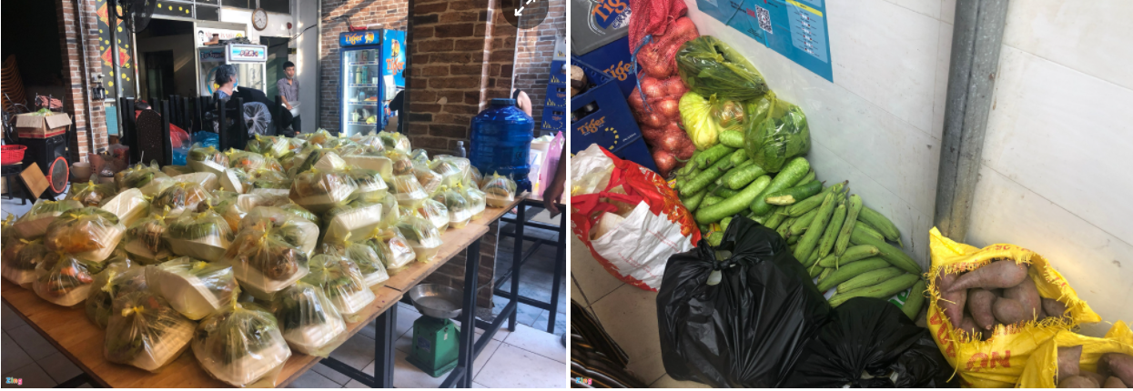 Mỗi ngày từ 8h sáng, nhóm của anh Trung sẽ tập trung tại tiệm cơm số 270 Lê Văn Thọ để cùng nấu nướng. Đến 16h30 khi việc đóng gói xong xuôi, nhóm anh sẽ bắt đầu phát phiếu đến bà con và bắt đầu tặng cơm lúc 17h.