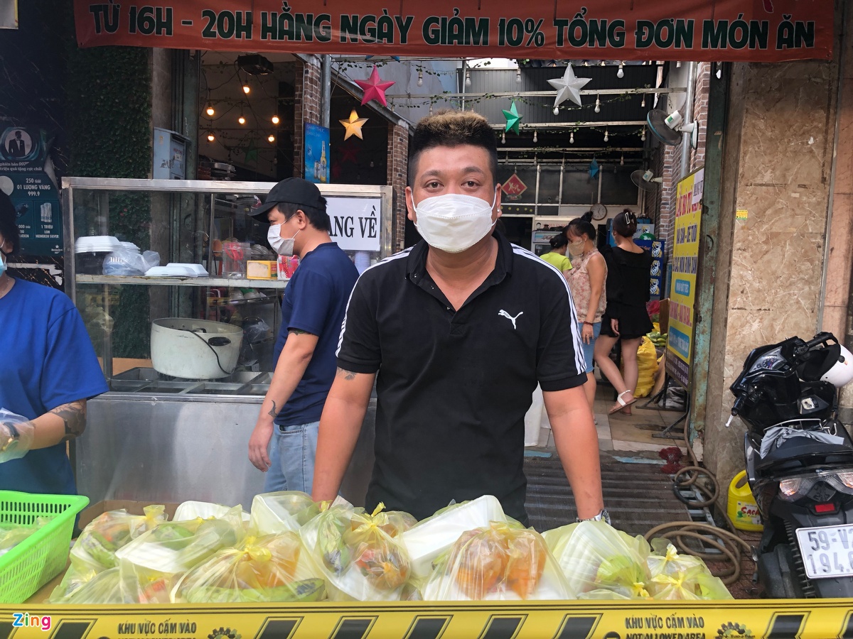 "Chúng tôi đã xin phép phường 11 để được chăng dây, đánh dấu vạch giãn cách cho bà con. Mỗi chiều cũng có các đồng chí dân phòng đến hỗ trợ chúng tôi nhắc nhở bà con tuân thủ nguyên tắc 5K.