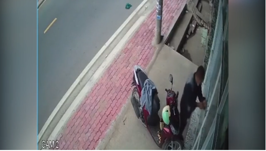 Nam thanh niên dùng kẽm cột cửa ngoài. Hắn ta ra tay trộm xe tay ga và rời đi trước sự bất lực của người phụ nữ ở Sài Gòn. Hiện vụ việc đang được làm rõ, xử lý.