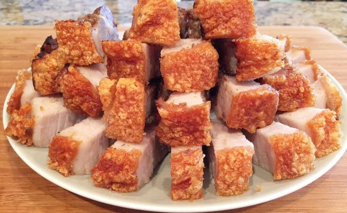 - Khi ăn thịt có thể chấm với tương ớt hoặc nước mắm tỏi ớt sẽ rất ngon. Miếng thịt ba chỉ quay chuẩn là bì nổ giòn, vàng. Ăn cùng với cơm nóng là hết ý.