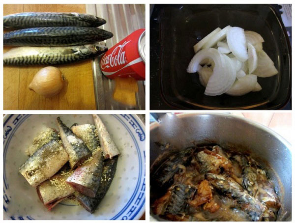 Nguyên liệu làm cá nục kho coca: Cá nục tươi loại nhỡ; Coca 330ml; Củ hành tây; Tỏi băm nhuyễn; Ớt đỏ luộc và xay nhuyễn; Gia vị: tiêu, muối, hạt nêm, dầu ăn, đường