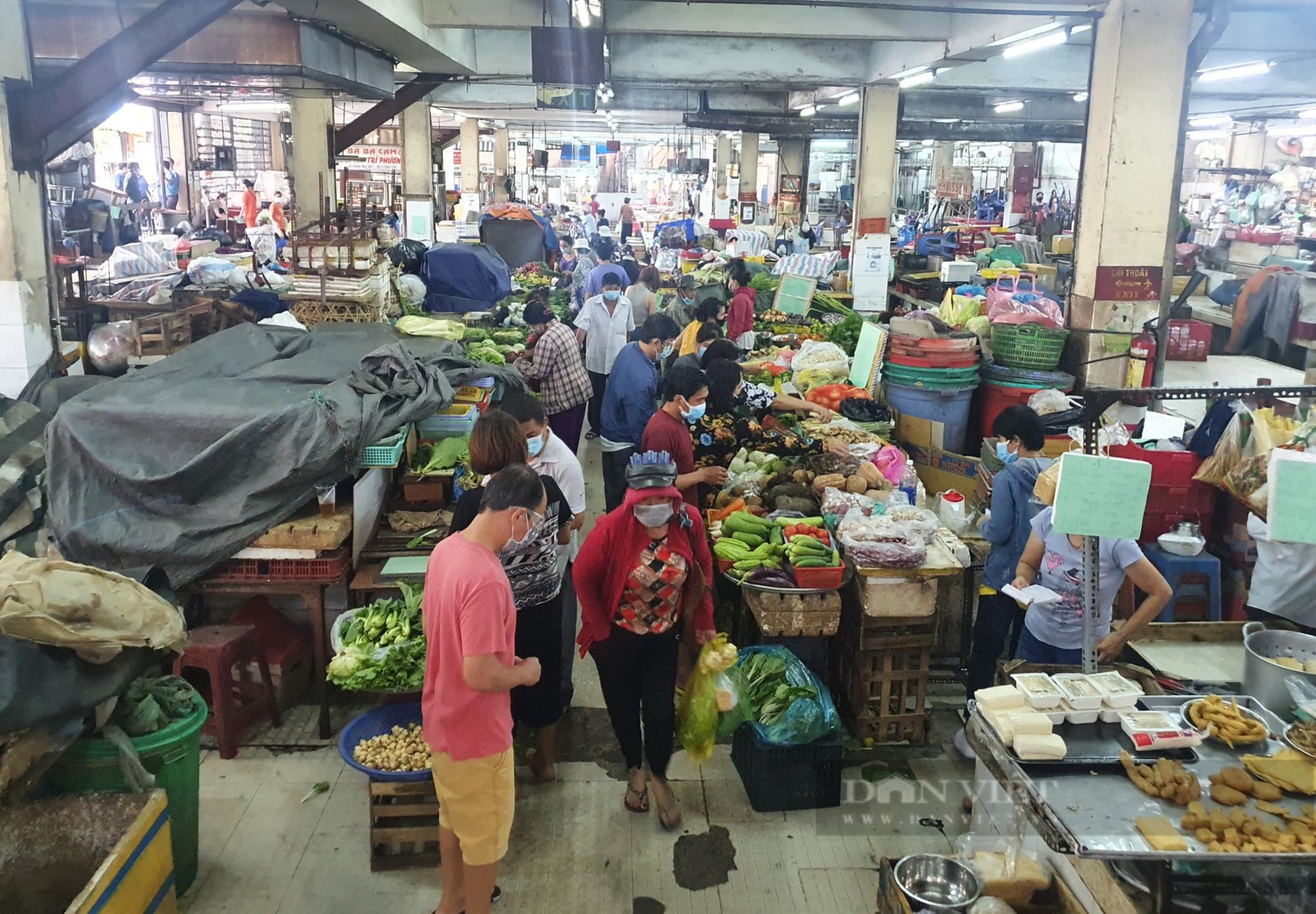 Tại chợ Nguyễn Tri Phương (quận 10), chỉ có tiểu thương các ngành hàng rau củ quả, thịt gia súc, gia cầm hoạt động để đáp ứng nhu cầu thực phẩm của người dân. Hàng hóa đều đầy trên các sạp. Ban quản lý chợ thực hiện nghiêm các biện pháp phòng dịch như giãn cách, đo thân nhiệt, sát khuẩn, khách buộc phải khai báo y tế trước khi vào mua sắm.