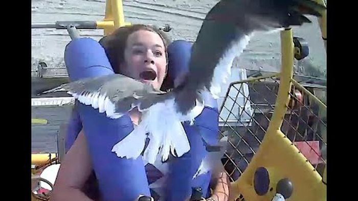 Mòng biển lao thẳng vào mặt du khách khi chơi trò cảm giác mạnh