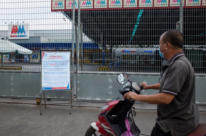 Hồi tháng 7, MM Mega Martket An Phú (TP Thủ Đức) cũng bị tạm ngưng hoạt động do có liên quan đến ca nhiễm, sau khi test Covid-19 cho nhân viên và phun khử khuẩn, siêu thị được mở lại sau 2 ngày tạm đóng. Sau đó, để hạn chế lây lan, siêu thị chọn phương án hạn chế khách bằng cách cho khách vào mua theo đợt. Mỗi đợt, siêu thị chỉ cho khoảng 30 khách vào. Khách sẽ đứng xếp hàng ở bãi xe theo đúng khoảng cách 2 m, bãi xe đầy thì siêu thị sẽ tạm ngưng đón khách mới trong khoảng 2 tiếng rồi mở trở lại.