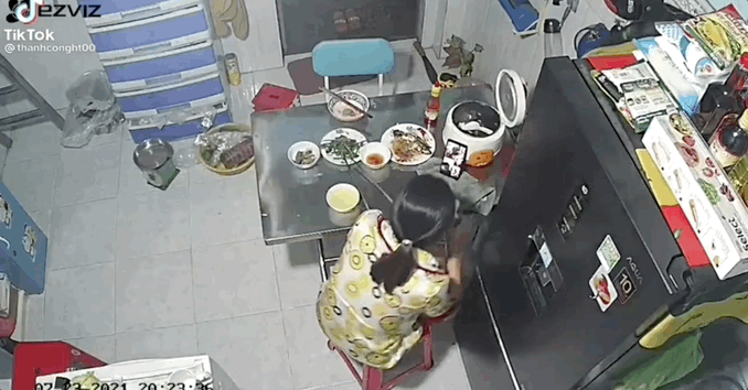 Vậy nên nhớ nha "quý dzị", ăn trên bàn, ngồi trên ghế thì tuyệt đối không gác chân lên ghế kẻo bị mất đà như cô gái trên nhé!