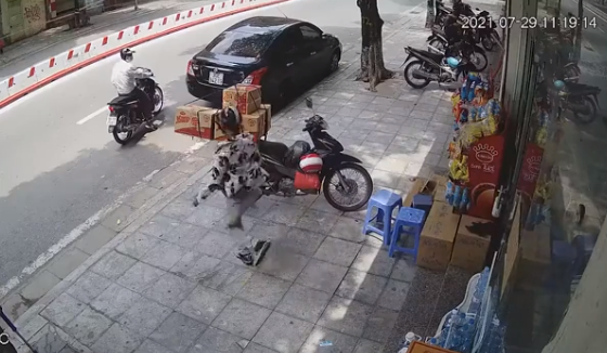 Khi chủ tiệm vừa cúi xuống cất chai nước rửa chén lên kệ thì tên này cầm hàng bỏ chạy lên xe đồng bọn. Cả hai rồ ga phóng đi trước ánh mắt nhìn bất lực của chủ tiệm.