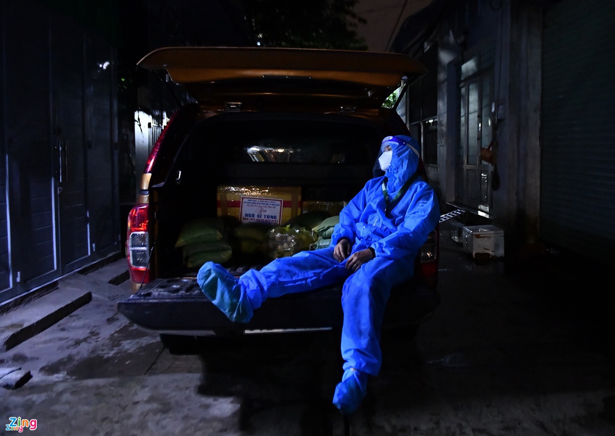 Lương thực, thực phẩm có thể đến được với những người dân trong khu phong tỏa ở TP.HCM nhờ sự nỗ lực lớn của các tình nguyện viên. Ảnh: Phạm Ngôn.