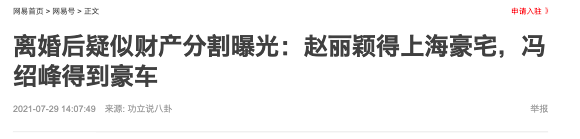 Tuy nhiên, theo nhận định của trang 163, Phùng Thiệu Phong không hề thua thiệt Triệu Lệ Dĩnh cuộc chiến gia sản này, lý do là bởi chồng cũ của mỹ nhân họ Triệu vốn là thiếu gia khét tiếng, cuộc sống chưa bao giờ phải lo tới chuyện kiếm tiền. Cặp vợ chồng có tất cả 17 công ty thuộc quyền quản lý của mình song đều hoạt động độc lập, chính vì vậy không liên quan tới việc phân chia tài sản.
