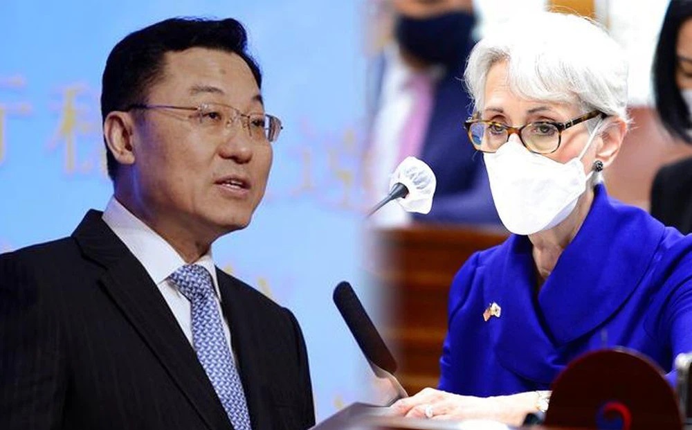 Thứ trưởng Ngoại giao Trung Quốc Tạ Phong (trái) khi ông gặp Thứ trưởng Ngoại giao Mỹ Wendy Sherman tại Thiên Tân. Ảnh: China Daily.