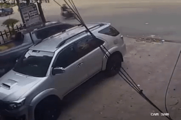 Ngay sau đó, chiếc xe ô tô bán tải đậu ngày sát xe 7 chỗ lăn bánh bắt đầu di chuyển. Tài xế không hay biết có sự xuất hiện của em bé nên đâm trúng, khiến bé nằm sõng xoài trước đầu xe bán tải rồi từ từ bị "nuốt chửng" vào trong gầm xe.