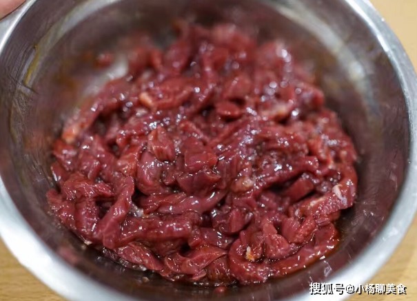 Khi ướp thịt bò cần cho tinh bột, muối, dầu ăn vào đảo đều, ướp trong vòng 15 phút. Sau khi ướp thịt bò xong, bạn bắc nồi lên đun nóng dầu, cho một lượng gừng băm vừa đủ rồi cho thịt bò đã ướp vào xào sơ qua.