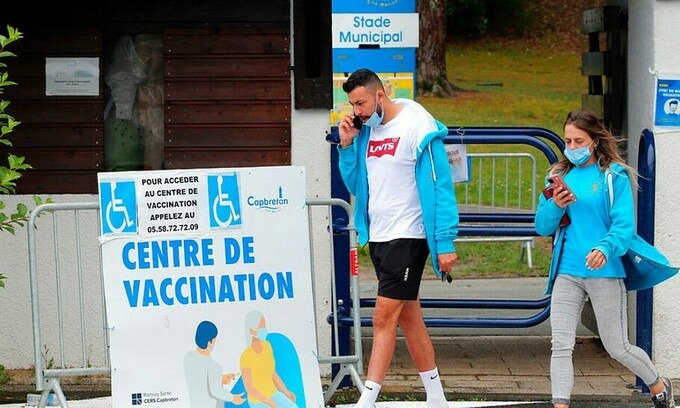 Người dân rời trung tâm tiêm chủng Covid-19 tại Capbreton, vùng Landes, phía tây nam nước Pháp vào ngày 24/6. Ảnh: AP.