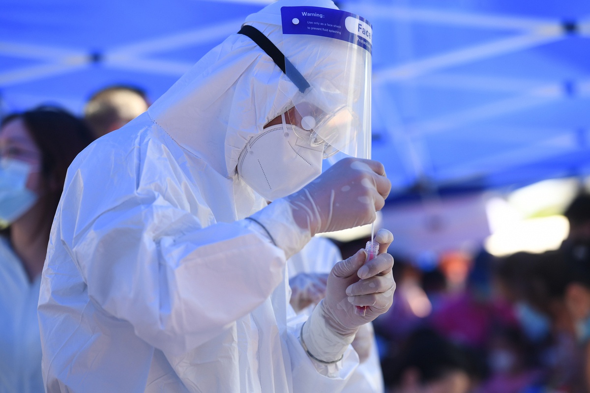 Nhân viên y tế ở thành phố Nam Kinh, thủ phủ tỉnh Tô Giang, miền Đông Trung Quốc, đang lấy mẫu xét nghiệm Covid-19. Ảnh: Tân Hoa Xã.