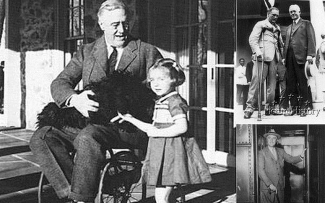 Bức ảnh hiếm hoi ghi lại hình ảnh Franklin D. Roosevelt ngồi xe lăn. Ông luôn cố gắng xuất hiện trước công chúng với tư thế đứng thẳng.