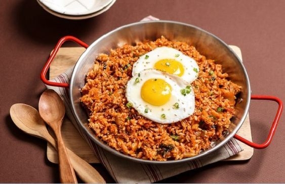 Cơm rang kim chi giòn thơm, vị ngọt đậm đà của cơm, trứng, thịt nguội quyện với vị chua cay nồng của kim chi khiến món ăn rất hài hòa.