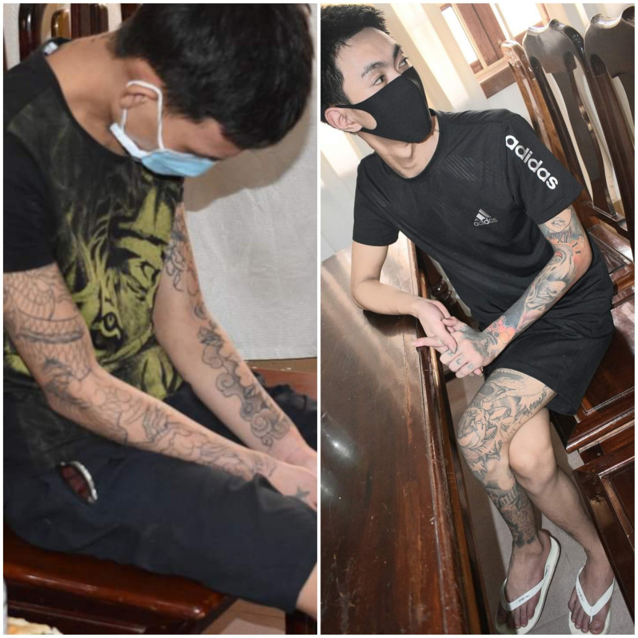 2 đối tượng nam trong nhóm 10 người bay lắc ma túy trong nhà kín. Ảnh: Công an TP.Đông Hà