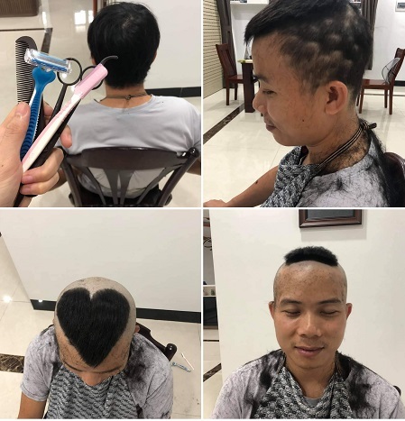 Trong những ngày giãn cách, clip "cắt tóc bằng dao lam" được chia sẻ rầm rộ trên mạng xã hội. Sau khi xem và thấy cũng dễ thực hiện, chị Hồng Diễm ở Châu Đức, Bà Rịa Vũng Tàu quyết định áp dụng để "giải tỏa cái tổ chim trên đầu chồng". Diễm gắn lưỡi lam vào lược rồi yêu cầu chồng ngồi im để thực hành. Bốn tuần không được ra ngoài, tóc dài đến mức đủ buộc, anh chồng cũng bức bối nên đồng ý cho vợ thử nghiệm.