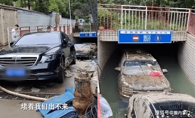 Tại tầng hầm để xe, một chiếc Mercedes đỗ ở điểm cao nhất của lối lên. Phía sau, một loạt xe khác xếp hàng và tất cả đều bị ngập nước, trừ chiếc Mercedes.